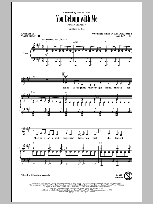 Download or print Mark Brymer You Belong With Me sheet music, chords and digital score arranged for SSA Choir. This Pop score includes 9 page(s).