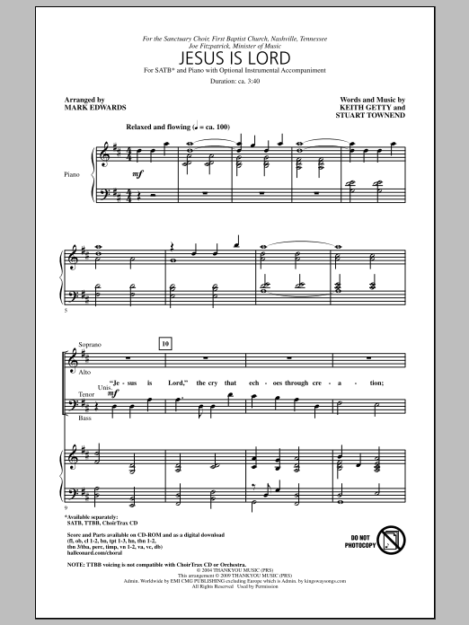 Download or print Mark Edwards Jesus Is Lord sheet music, chords and digital score arranged for SATB Choir. This Easter score includes 7 page(s).