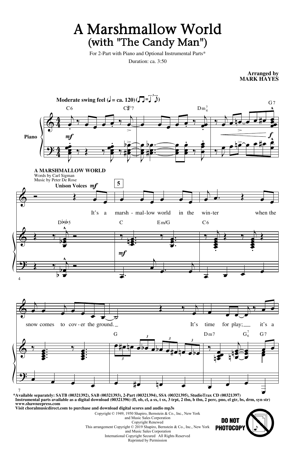 Download or print Mark Hayes A Marshmallow World (with "The Candy Man") sheet music, chords and digital score arranged for SSA Choir. This Children score includes 14 page(s).