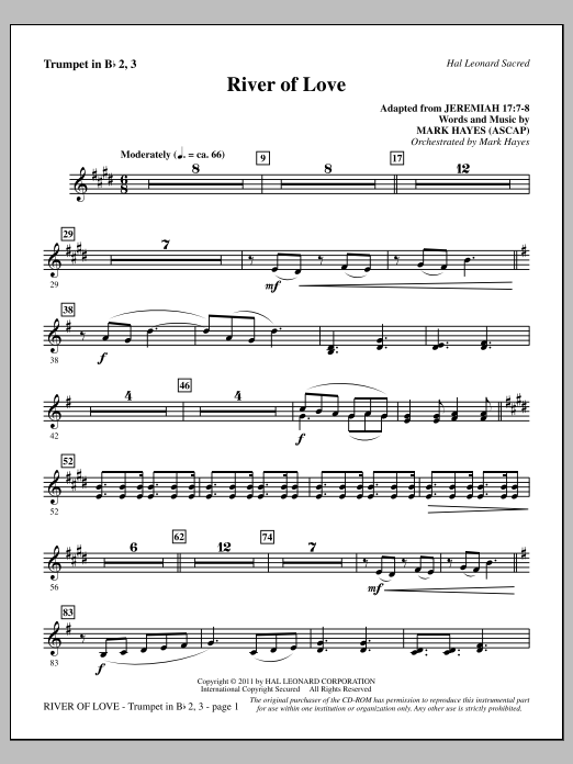 Download or print Mark Hayes River Of Love - Bb Trumpet 2,3 sheet music, chords and digital score arranged for Choir Instrumental Pak. This Concert score includes 2 page(s).