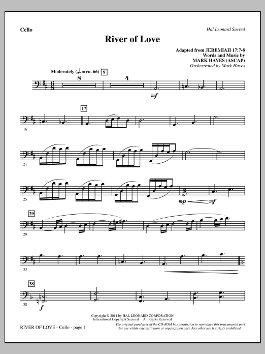 Download or print Mark Hayes River Of Love - Cello sheet music, chords and digital score arranged for Choir Instrumental Pak. This Concert score includes 3 page(s).