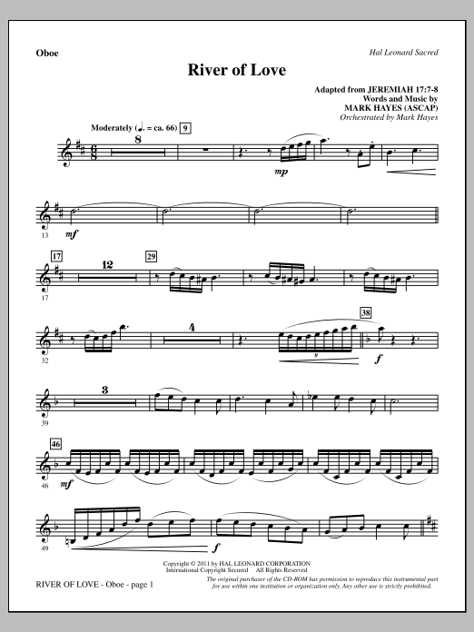 Download or print Mark Hayes River Of Love - Oboe sheet music, chords and digital score arranged for Choir Instrumental Pak. This Concert score includes 3 page(s).