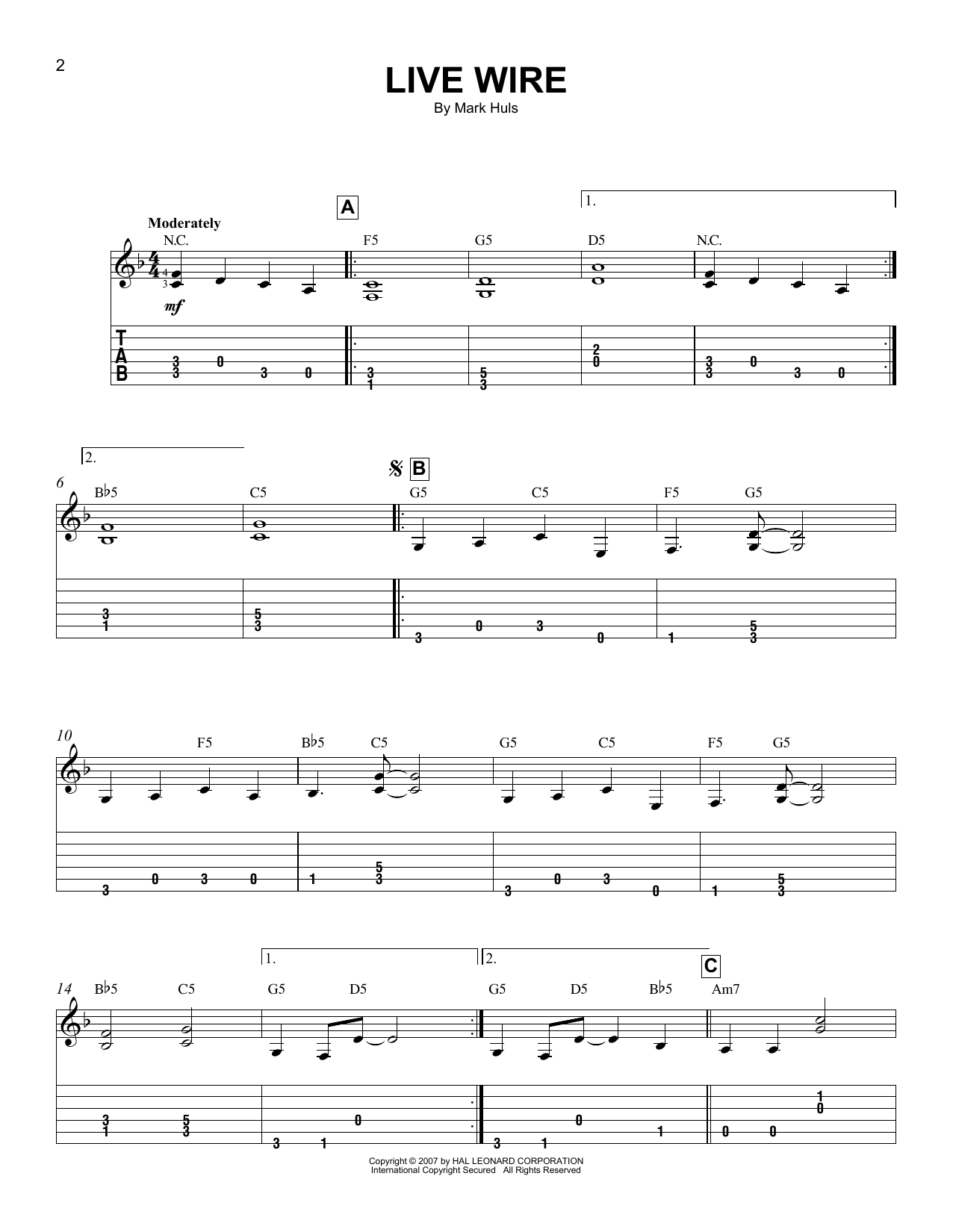 Download or print Mark Huls Live Wire sheet music, chords and digital score arranged for Easy Guitar Tab. This Instructional score includes 2 page(s).