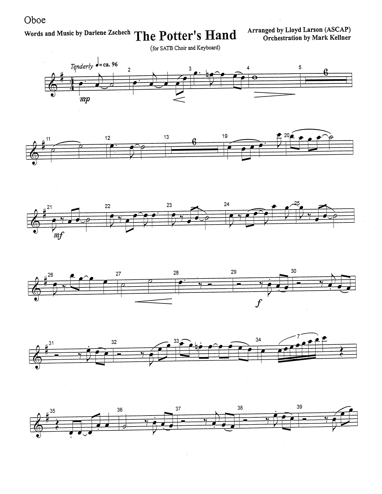 Download or print Mark Kellner The Potter's Hand - Oboe sheet music, chords and digital score arranged for Choir Instrumental Pak. This Sacred score includes 3 page(s).