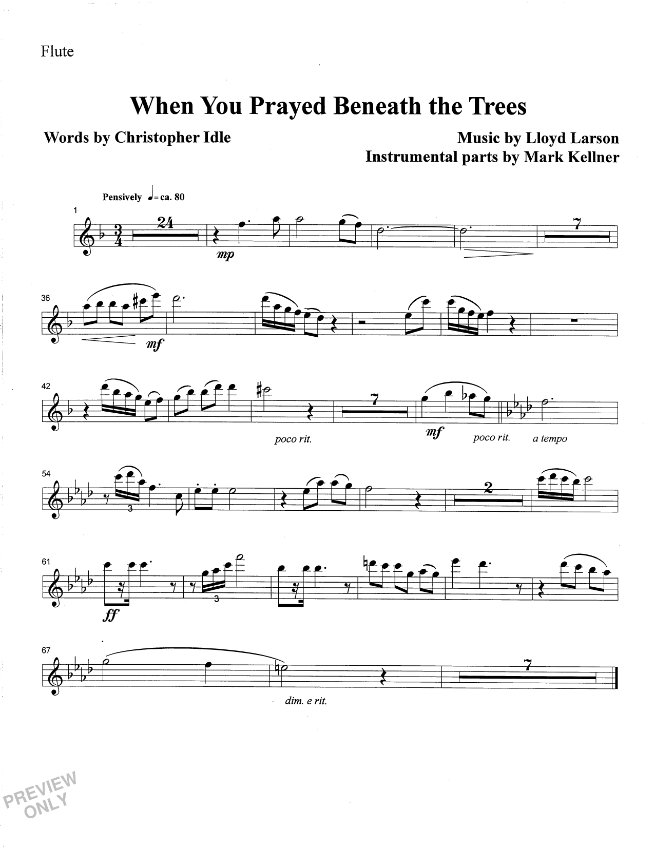 Download or print Mark Kellner When You Prayed Beneath The Trees - Flute sheet music, chords and digital score arranged for Choir Instrumental Pak. This Sacred score includes 1 page(s).