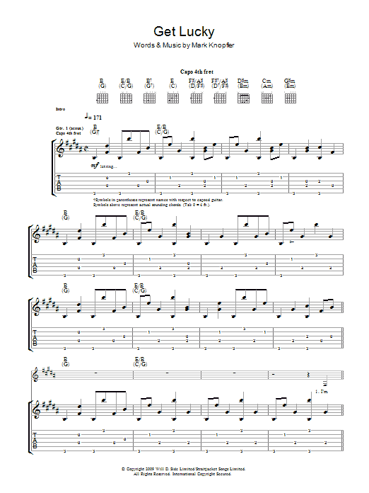 Download or print Mark Knopfler Get Lucky sheet music, chords and digital score arranged for Guitar Chords/Lyrics. This Pop score includes 3 page(s).