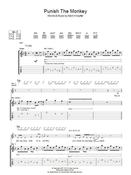 Download or print Mark Knopfler Punish The Monkey sheet music, chords and digital score arranged for Guitar Tab. This Rock score includes 11 page(s).