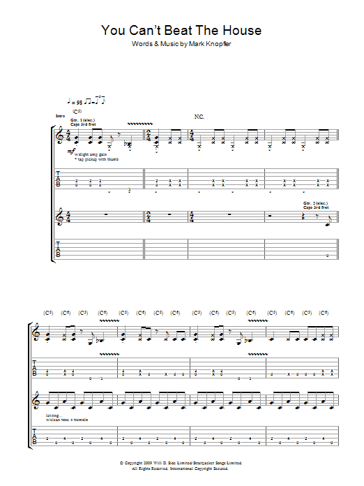 Download or print Mark Knopfler You Can't Beat The House sheet music, chords and digital score arranged for Guitar Tab. This Rock score includes 9 page(s).
