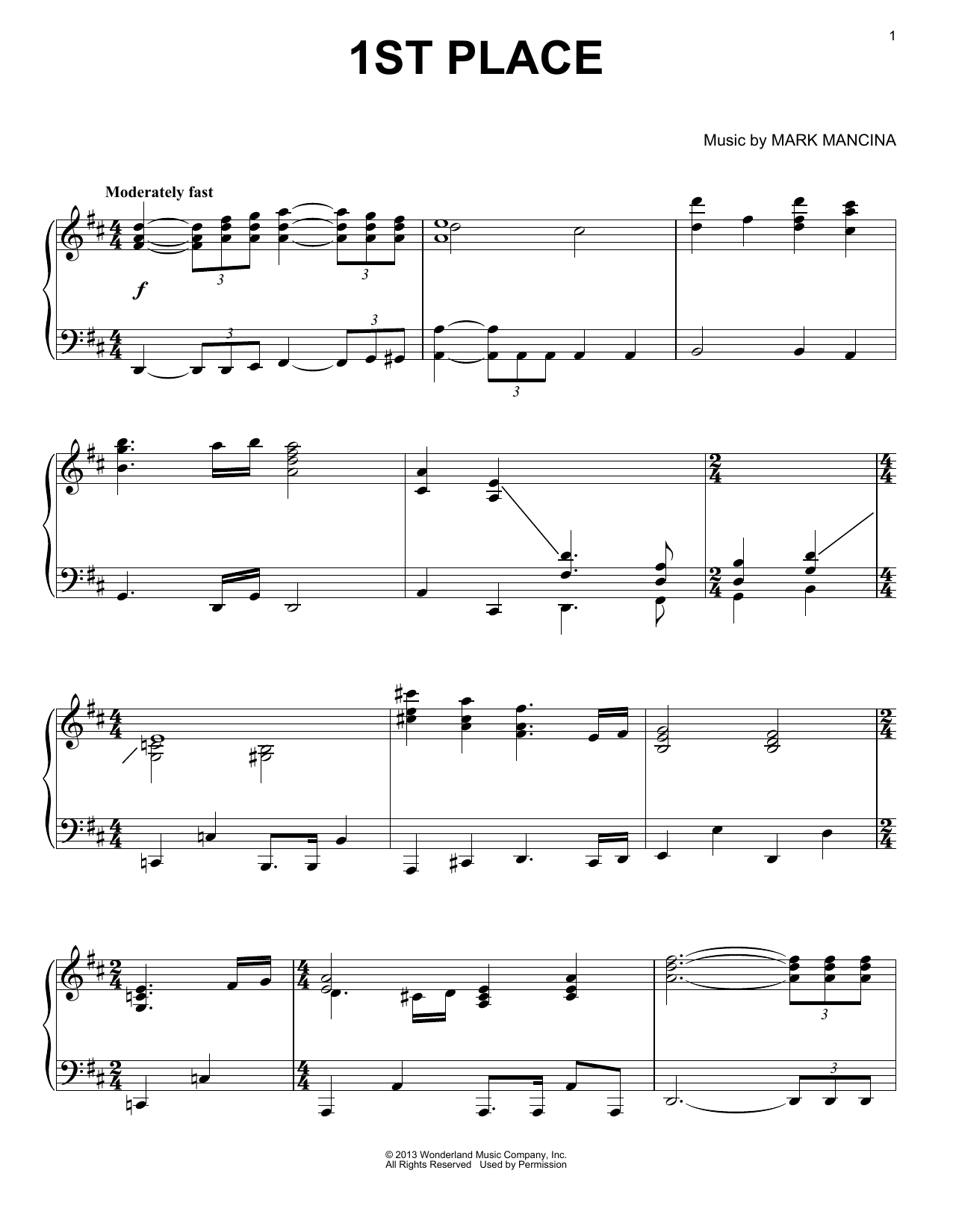 Download or print Mark Mancina 1st Place sheet music, chords and digital score arranged for Piano Solo. This Children score includes 4 page(s).