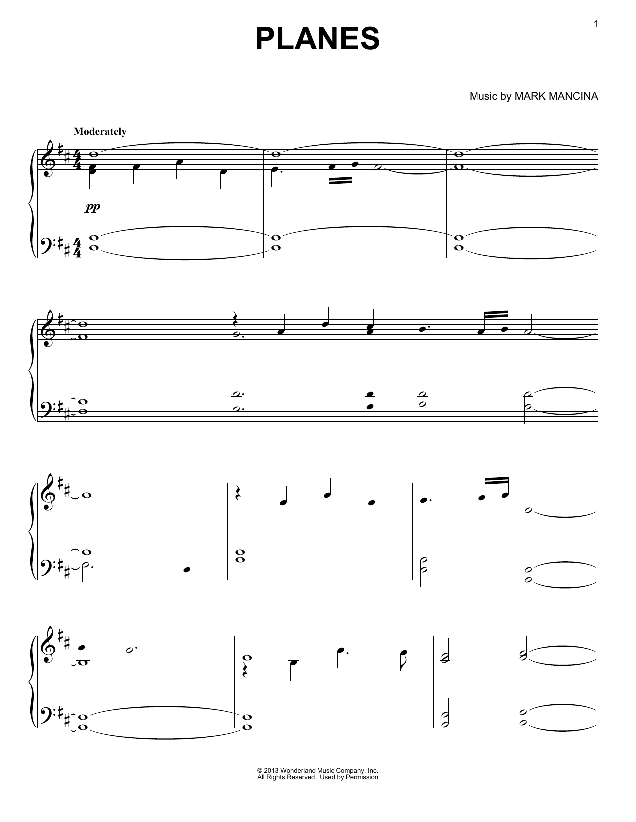 Download or print Mark Mancina Planes sheet music, chords and digital score arranged for Piano Solo. This Children score includes 5 page(s).