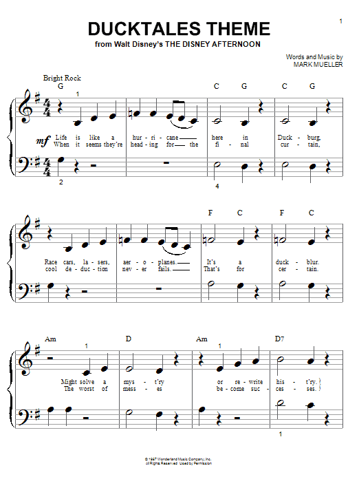 Download or print Mark Mueller DuckTales Theme sheet music, chords and digital score arranged for Lead Sheet / Fake Book. This Children score includes 1 page(s).