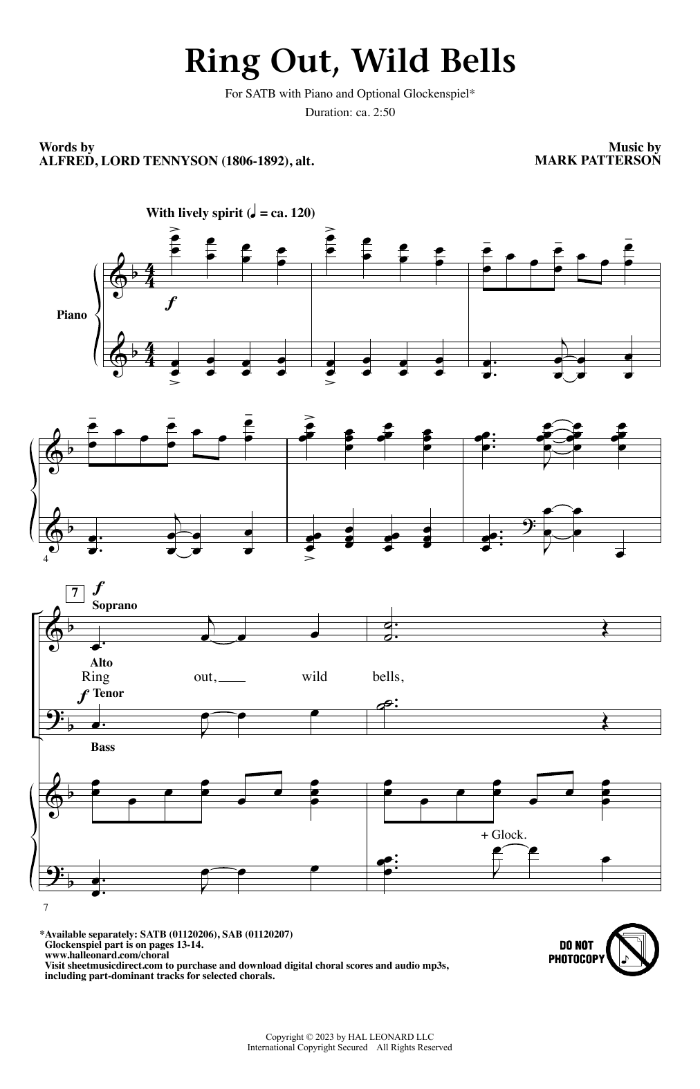 Download or print Mark Patterson Ring Out, Wild Bells sheet music, chords and digital score arranged for SAB Choir. This Concert score includes 13 page(s).
