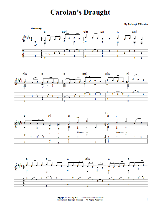 Download or print Turlough O'Carolan Carolan's Draught (arr. Mark Phillips) sheet music, chords and digital score arranged for Easy Guitar Tab. This Irish score includes 2 page(s).