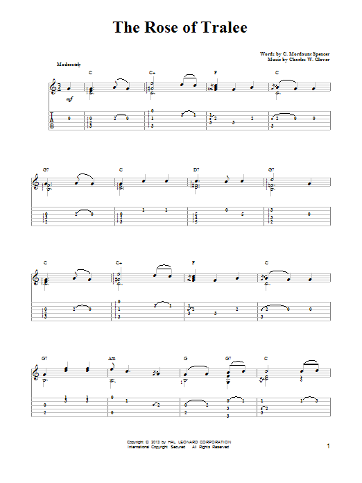 Download or print Mark Phillips The Rose Of Tralee sheet music, chords and digital score arranged for Easy Guitar Tab. This Folk score includes 2 page(s).