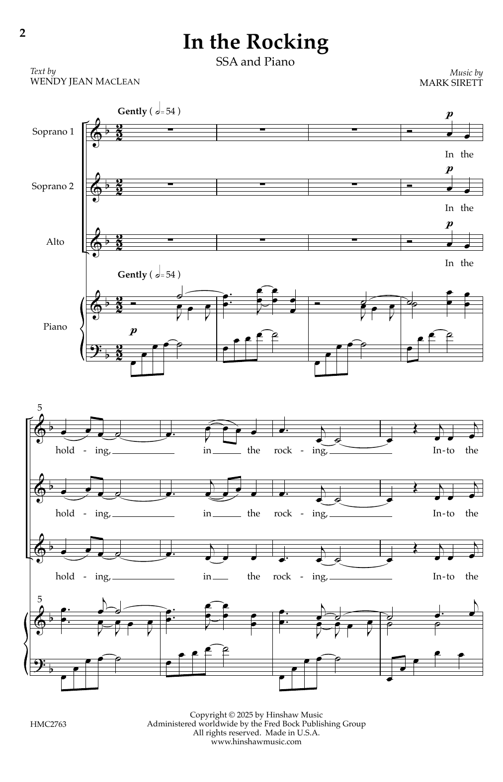 Download or print Mark Sirett In the Rocking sheet music, chords and digital score arranged for SSA Choir. This Concert score includes 11 page(s).