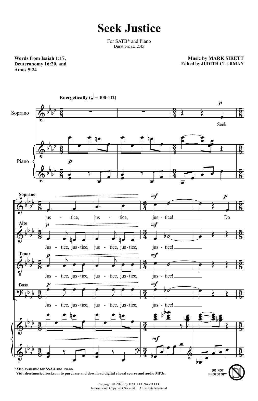 Download or print Mark Sirett Seek Justice sheet music, chords and digital score arranged for TTBB Choir. This Festival score includes 11 page(s).