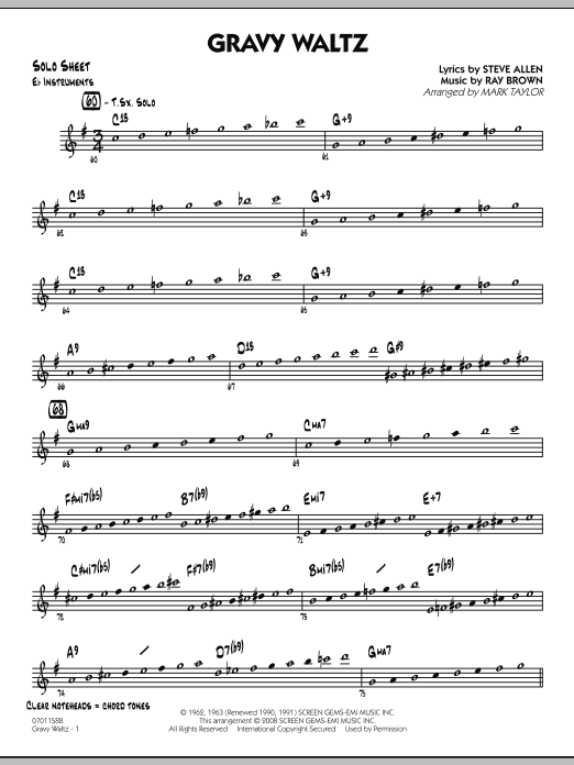 Download or print Mark Taylor Gravy Waltz - Eb Solo Sheet sheet music, chords and digital score arranged for Jazz Ensemble. This Jazz score includes 2 page(s).