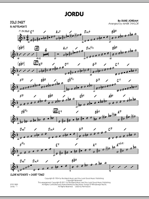 Download or print Mark Taylor Jordu - Bb Solo Sheet sheet music, chords and digital score arranged for Jazz Ensemble. This Jazz score includes 2 page(s).