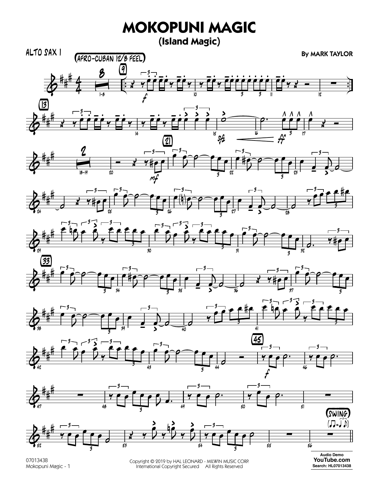 Download or print Mark Taylor Mokopuni Magic (Island Magic) - Alto Sax 1 sheet music, chords and digital score arranged for Jazz Ensemble. This Jazz score includes 3 page(s).
