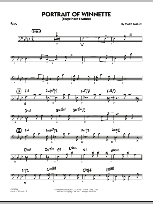 Download or print Mark Taylor Portrait Of Winnette - Bass sheet music, chords and digital score arranged for Jazz Ensemble. This Jazz score includes 3 page(s).