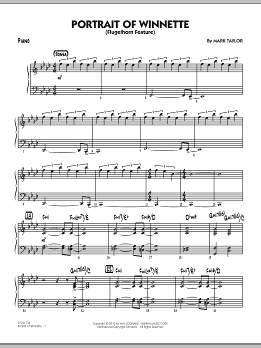 Download or print Mark Taylor Portrait Of Winnette - Piano sheet music, chords and digital score arranged for Jazz Ensemble. This Jazz score includes 4 page(s).