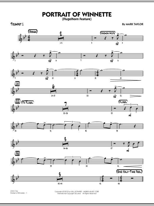 Download or print Mark Taylor Portrait Of Winnette - Trumpet 1 sheet music, chords and digital score arranged for Jazz Ensemble. This Jazz score includes 2 page(s).
