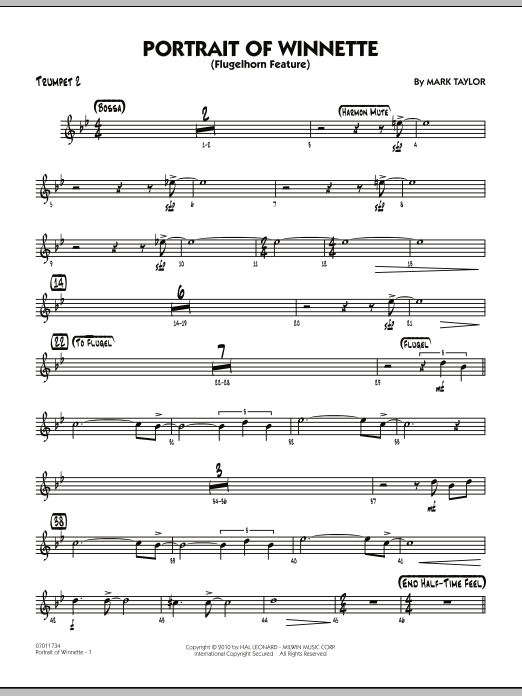 Download or print Mark Taylor Portrait Of Winnette - Trumpet 2 sheet music, chords and digital score arranged for Jazz Ensemble. This Jazz score includes 2 page(s).