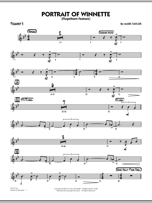Download or print Mark Taylor Portrait Of Winnette - Trumpet 3 sheet music, chords and digital score arranged for Jazz Ensemble. This Jazz score includes 2 page(s).