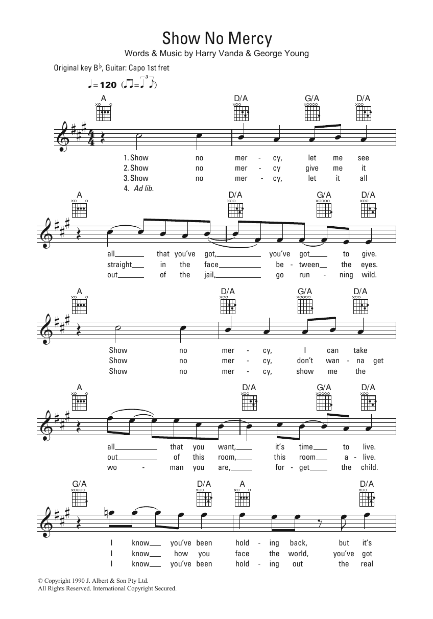 Download or print Mark Williams Show No Mercy sheet music, chords and digital score arranged for Lead Sheet / Fake Book. This Pop score includes 3 page(s).