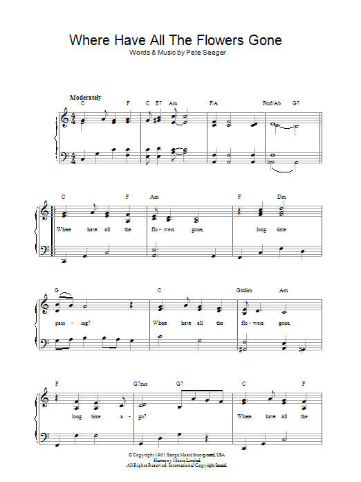 Quick facts Where Have All The Flowers Gone about digital sheet music