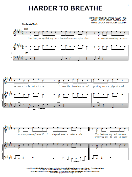Download or print Maroon 5 Harder To Breathe sheet music, chords and digital score arranged for Guitar Tab. This Rock score includes 10 page(s).