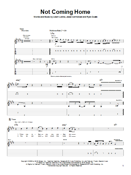 Download or print Maroon 5 Not Coming Home sheet music, chords and digital score arranged for Lead Sheet / Fake Book. This Pop score includes 3 page(s).
