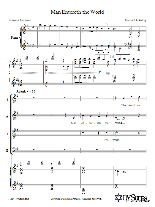 Download or print Marshall Portnoy Man Entereth the World sheet music, chords and digital score arranged for SATB Choir. This Traditional score includes 5 page(s).