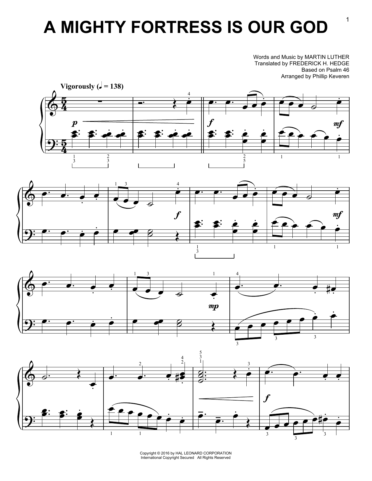 Download or print Frederick H. Hedge A Mighty Fortress Is Our God [Classical version] (arr. Phillip Keveren) sheet music, chords and digital score arranged for Easy Piano. This Hymn score includes 2 page(s).