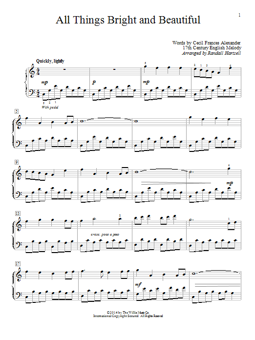 Download or print Martin Shaw All Things Bright And Beautiful sheet music, chords and digital score arranged for Educational Piano. This Sacred score includes 3 page(s).