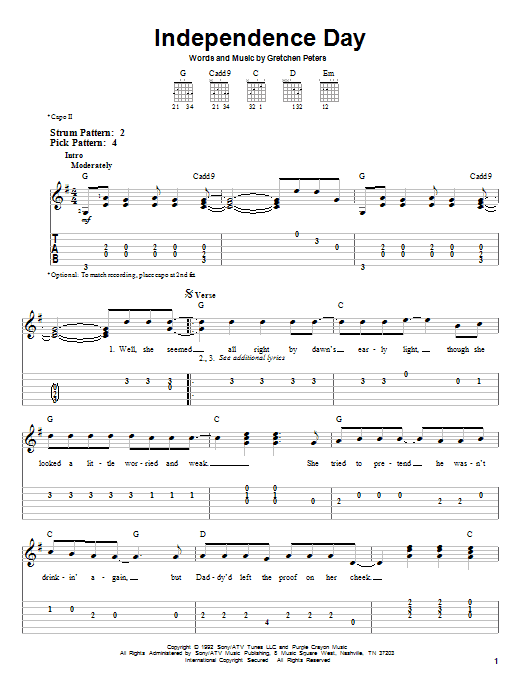 Download or print Martina McBride Independence Day sheet music, chords and digital score arranged for Easy Piano. This Country score includes 5 page(s).