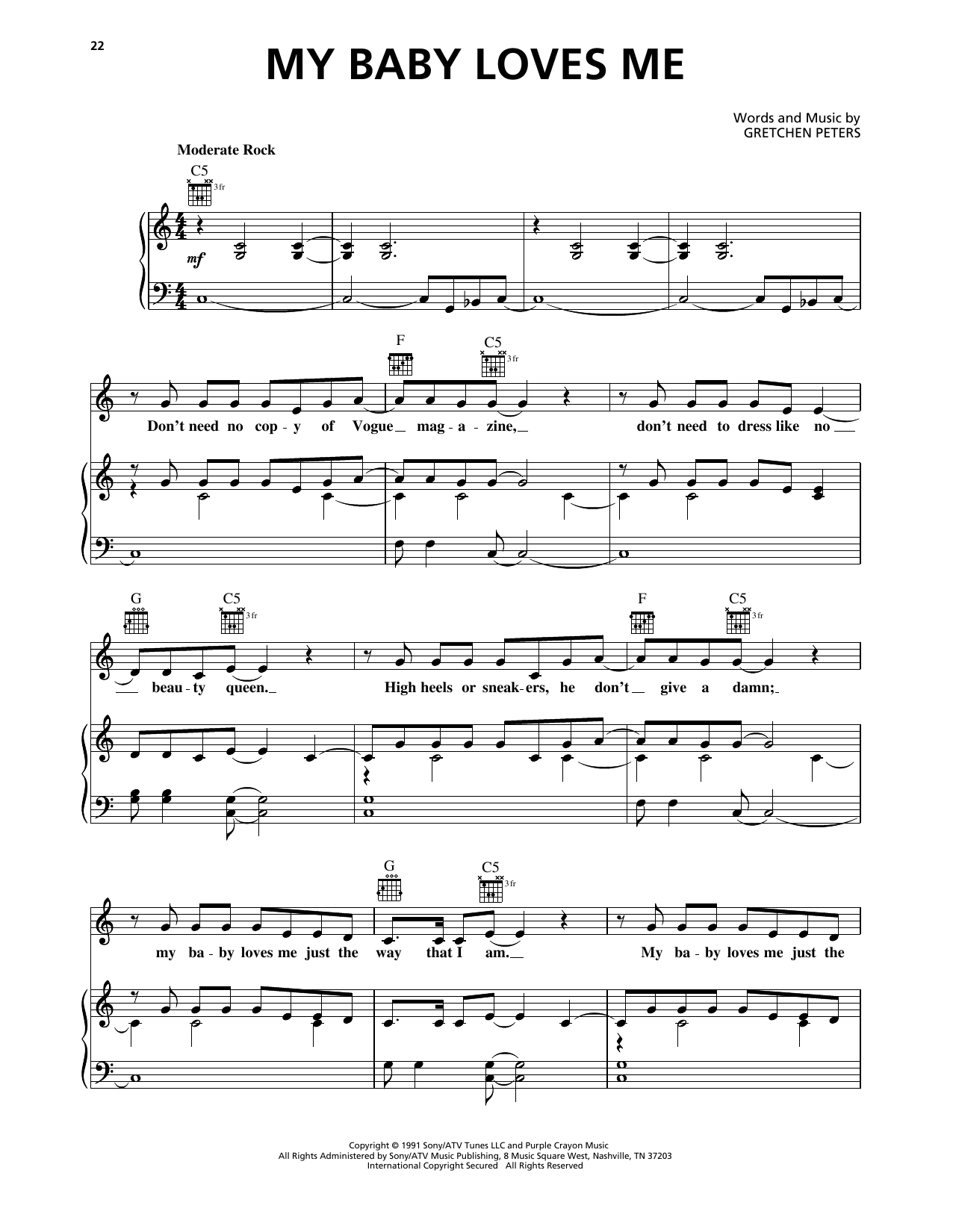 Download or print Martina McBride My Baby Loves Me sheet music, chords and digital score arranged for Piano, Vocal & Guitar Chords (Right-Hand Melody). This Country score includes 6 page(s).