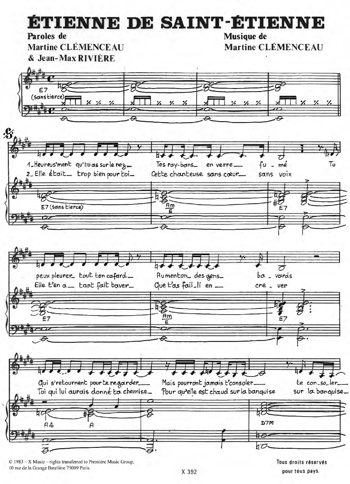 Download or print Martine Clemenceau Etienne De Saint-Etienne sheet music, chords and digital score arranged for Piano & Vocal. This Pop score includes 3 page(s).