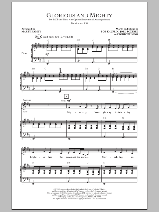 Download or print Marty Hamby Glorious And Mighty sheet music, chords and digital score arranged for SATB Choir. This Contemporary score includes 10 page(s).