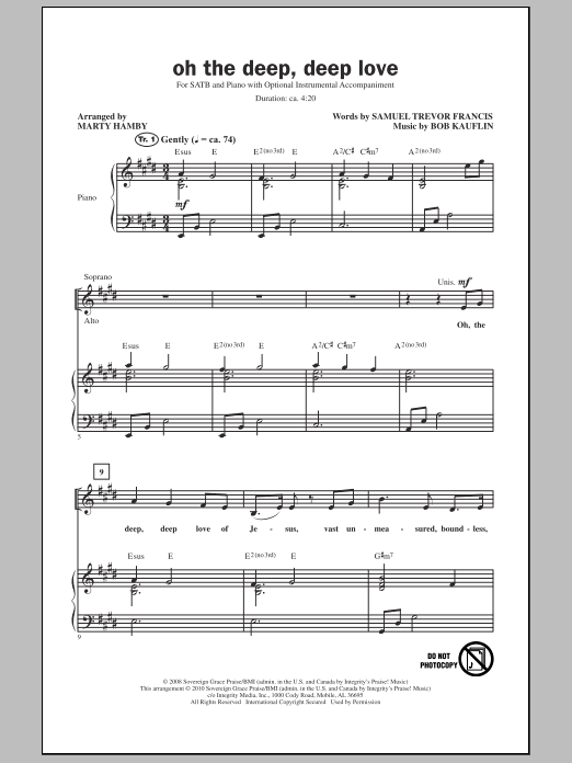 Download or print Marty Hamby Oh The Deep Deep Love sheet music, chords and digital score arranged for SATB Choir. This Easter score includes 11 page(s).