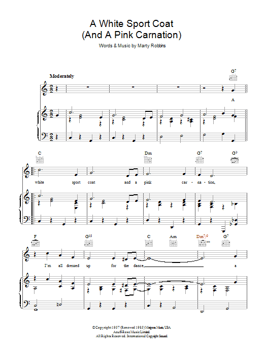 Download or print Marty Robbins A White Sport Coat (And A Pink Carnation) sheet music, chords and digital score arranged for Lead Sheet / Fake Book. This Country score includes 1 page(s).