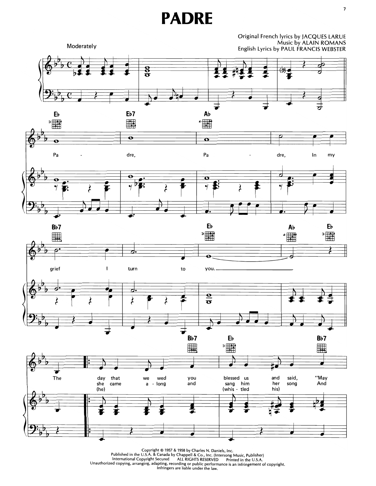 Download or print Marty Robbins Padre sheet music, chords and digital score arranged for Piano, Vocal & Guitar Chords (Right-Hand Melody). This Country score includes 3 page(s).