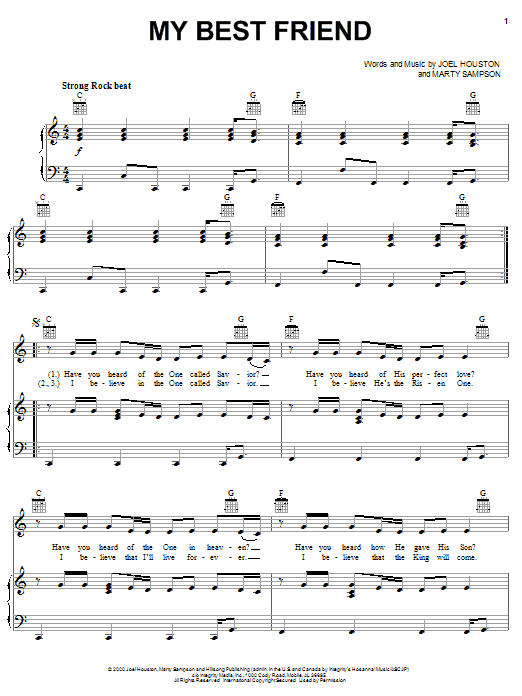 Download or print Hillsong Worship My Best Friend sheet music, chords and digital score arranged for Piano, Vocal & Guitar Chords (Right-Hand Melody). This Christian score includes 6 page(s).