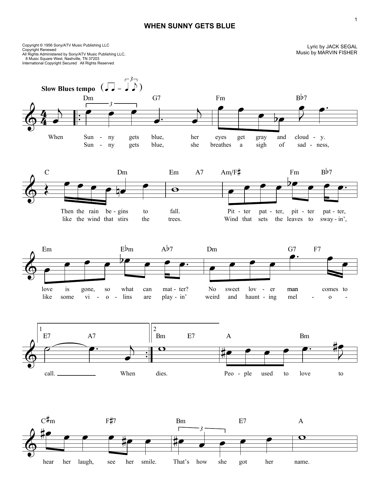Download or print Marvin Fisher When Sunny Gets Blue sheet music, chords and digital score arranged for Vibraphone Solo. This Jazz score includes 1 page(s).
