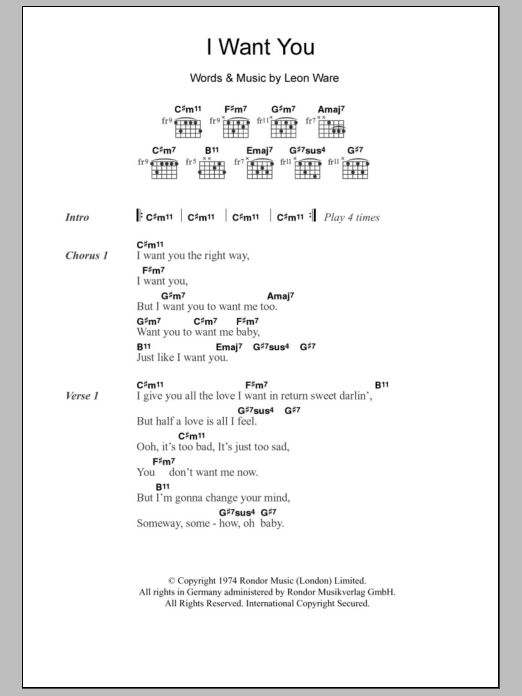Download or print Marvin Gaye I Want You sheet music, chords and digital score arranged for Guitar Chords/Lyrics. This Soul score includes 2 page(s).