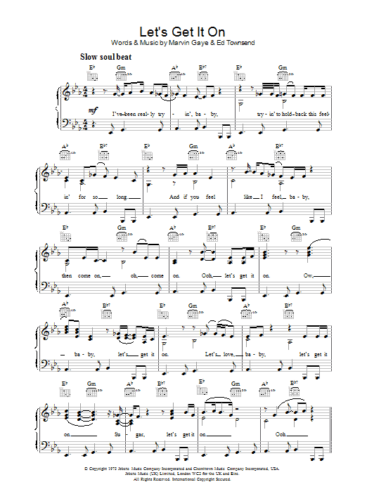 Download or print Marvin Gaye Let's Get It On sheet music, chords and digital score arranged for Beginner Piano (Abridged). This Soul score includes 3 page(s).