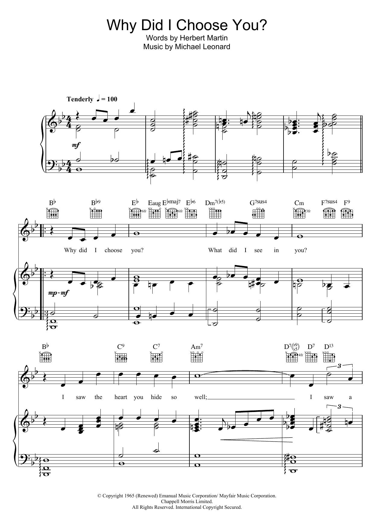 Download or print Marvin Gaye Why Did I Choose You? sheet music, chords and digital score arranged for Piano, Vocal & Guitar Chords. This Standards score includes 4 page(s).