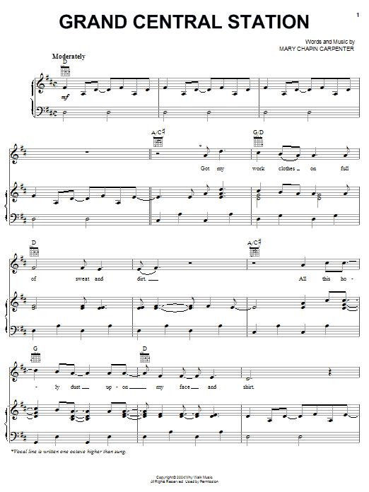 Download or print Mary Chapin Carpenter Grand Central Station sheet music, chords and digital score arranged for Piano, Vocal & Guitar Chords (Right-Hand Melody). This Country score includes 10 page(s).