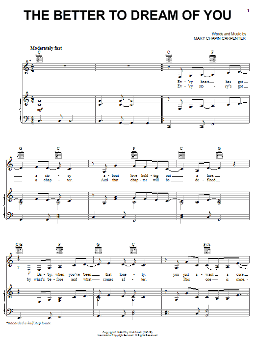 Download or print Mary Chapin Carpenter The Better To Dream Of You sheet music, chords and digital score arranged for Piano, Vocal & Guitar Chords (Right-Hand Melody). This Country score includes 5 page(s).