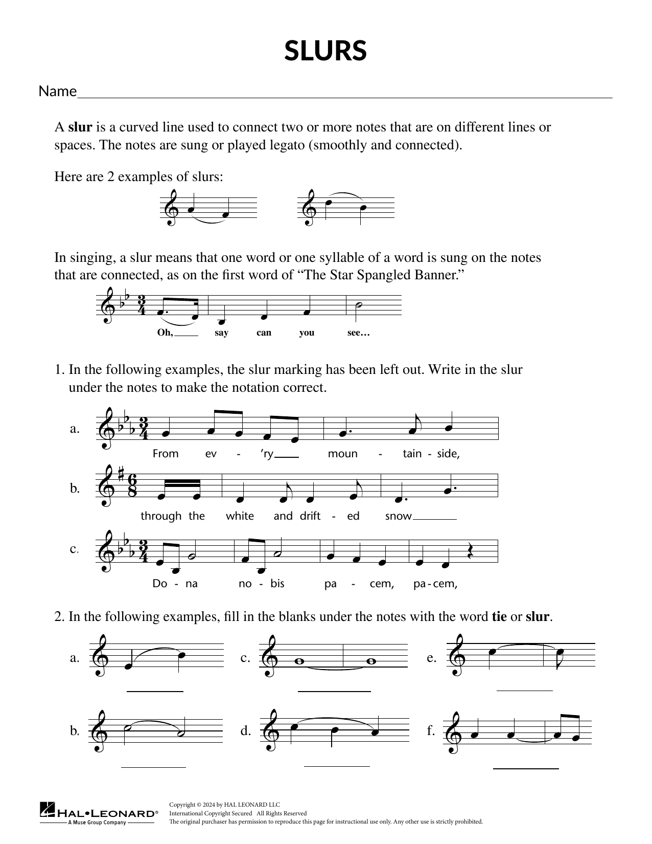 Download or print Mary Donelly Slurs sheet music, chords and digital score arranged for Theory Worksheet. This Instructional score includes 2 page(s).